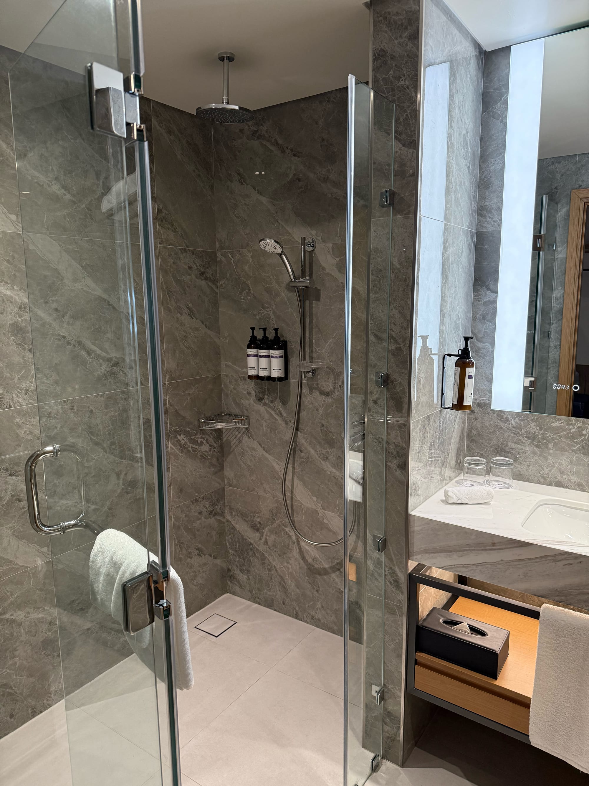 The bathroom was where this room really started to shine. A nice walk in shower with rainfall head. It had good pressure, and instant heat. No waiting 1 or 2 minutes while it heats up. It came with a toilet, with bidet attachment, and a dedicated bidet, European style. I wish the water was heated like Japanese toto’s or even the Kohler toilet we have at home, but it was better than not having a bidet.