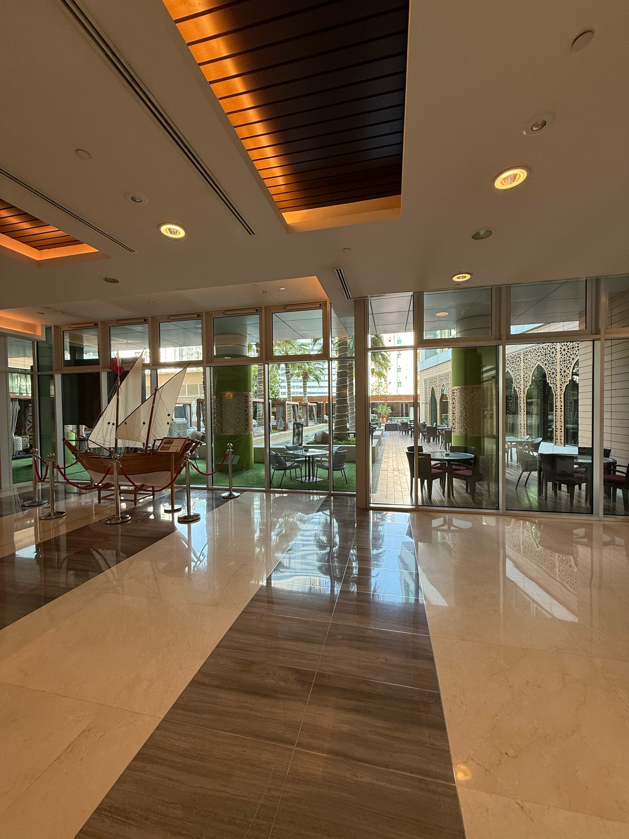 I arrived via an Al Maha airport transfer straight from the airport. It was about 20ish minutes away in a region called Al Hilal East, About 1.5 miles (2.41 kilometers) away from the National museum of Qatar. Right outside the hotel is what seems to be a Qatar Airways office and a subway station. I walked around a bit, but the heat won out, and I had to retreat indoors.