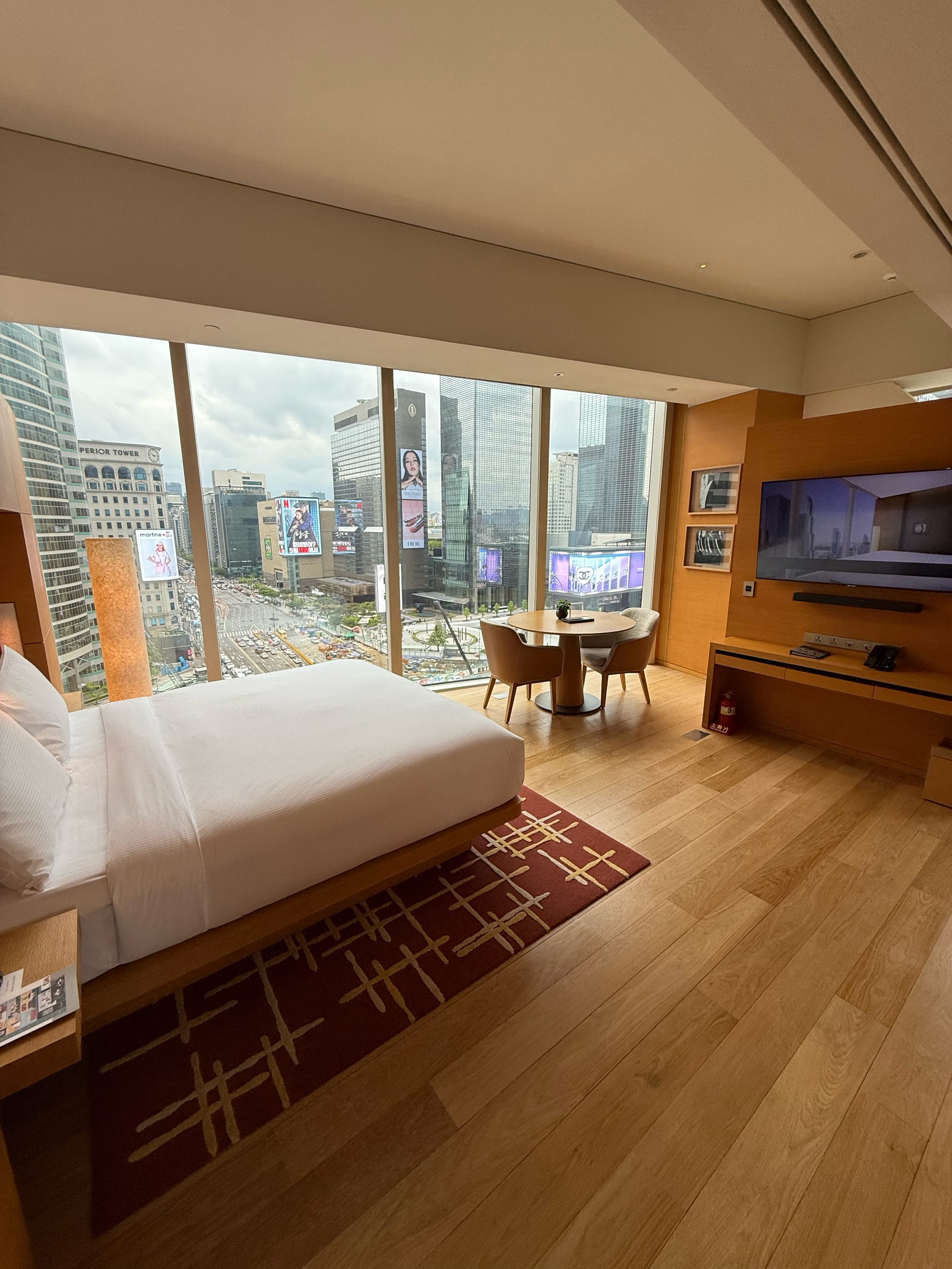 The Hotel is located in Gangnam, just like most of the upscale hotels in Seoul. What's makes this special, (along with the Shilla, and Intercontinental Seoul) is that this hotel is right next to the CoEx mall system. There is a Samseong station stop/exit which allows you to get on the subway station and go anywhere in Seoul. This is one of my favorite hubs in for a Hotel. Not only is there plenty of dining, around the hotel, or at any of the 3 malls nearby. But there is also one hell of a view for any room at this hotel.