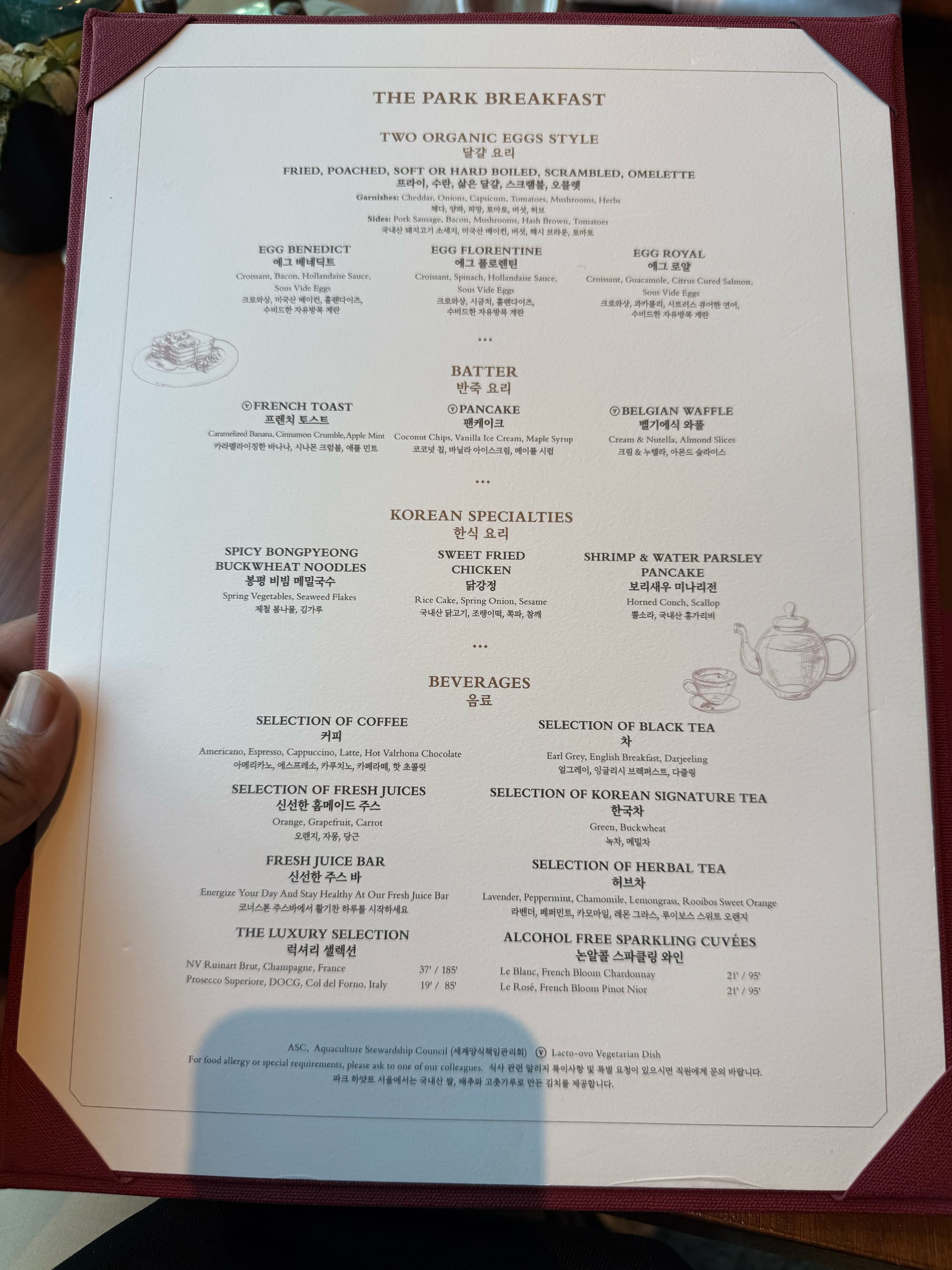 Breakfast was the single greatest this about this hotel. I have not had a better meal anywhere else in Seoul (besides going to bb.q chicken in some random hole in the wall). Every morning was a remarkable spread of hot foods, salads, cold foods and many options. The juice and Milk bar were also some of my favorites.