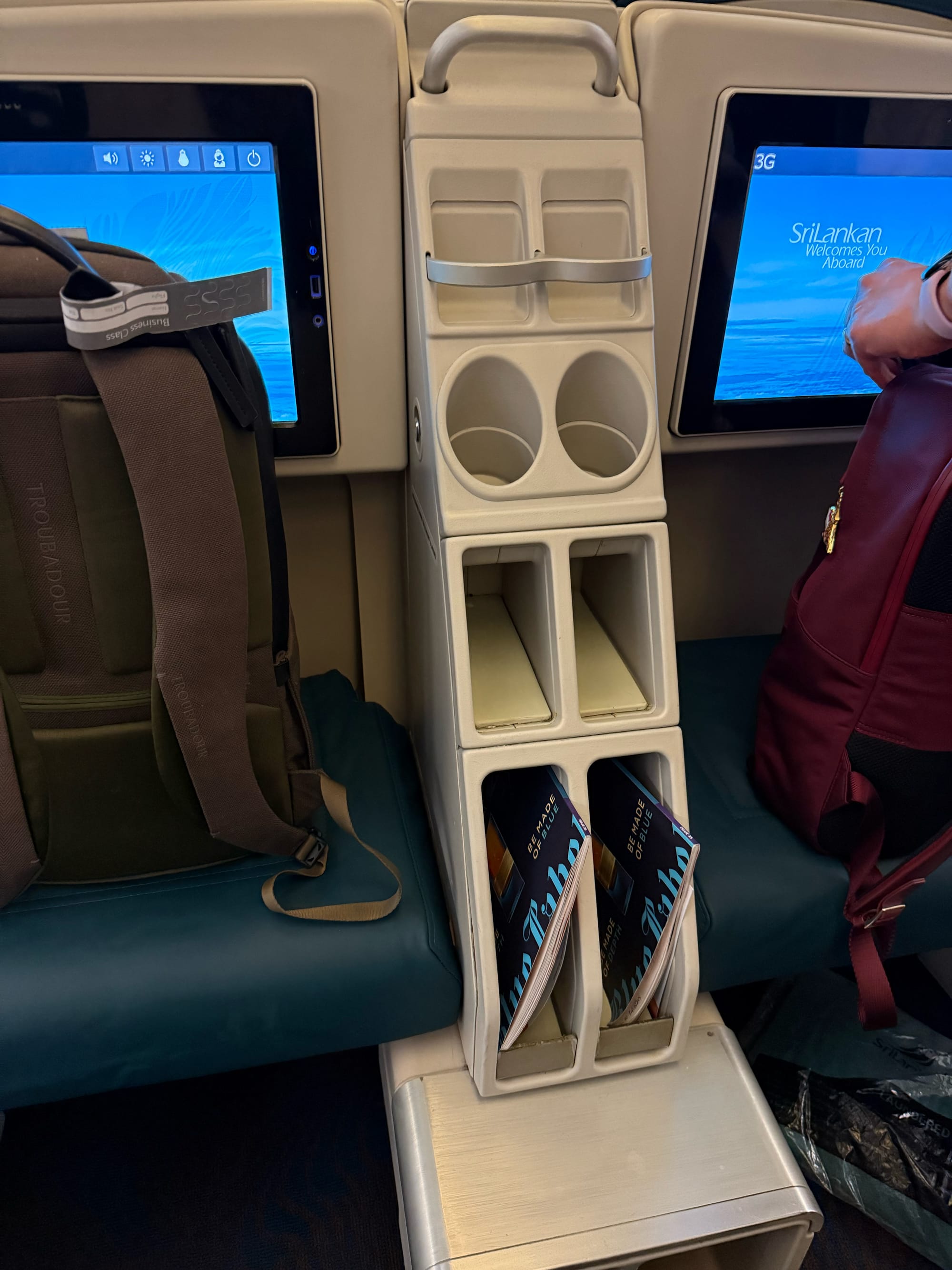 I flew on Sri Lankan Airways from Colombo to Incheon, South Korea. I had looked up the airline beforehand and Skytrax rates them 3/5 stars. Furthermore, I was prepared to temper my expectations, but I low-key (or maybe high key) enjoyed myself. It was a bit of a hassle doing our boarding experience, but like our flight to Doha, business was basically empty so we had very attentive flight attendants.